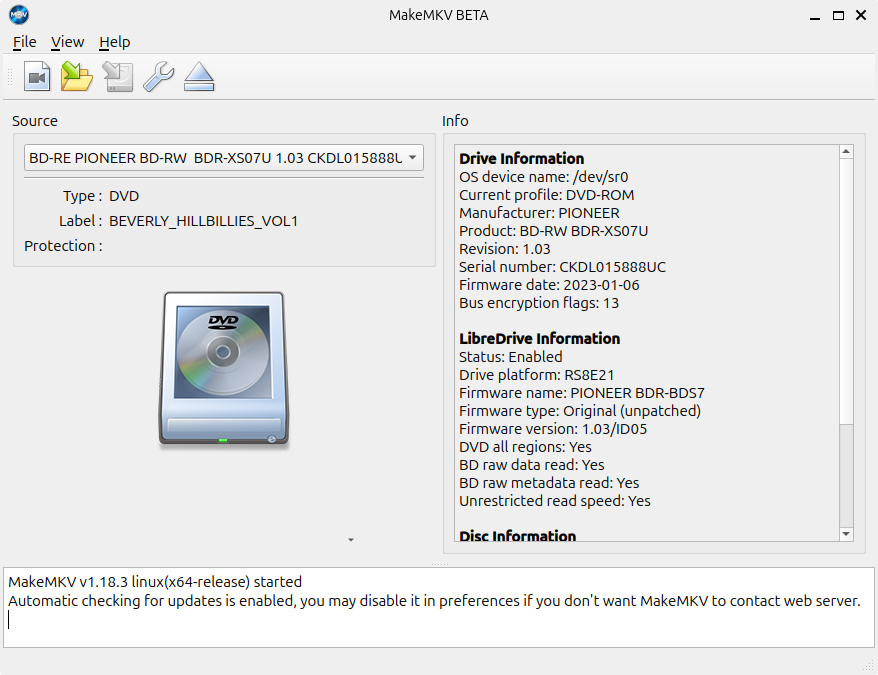 You can then extract video files from a DVD by clicking on File, then selecting Open disc, and then clicking on the DVD title that should appear to the right of Open disc.