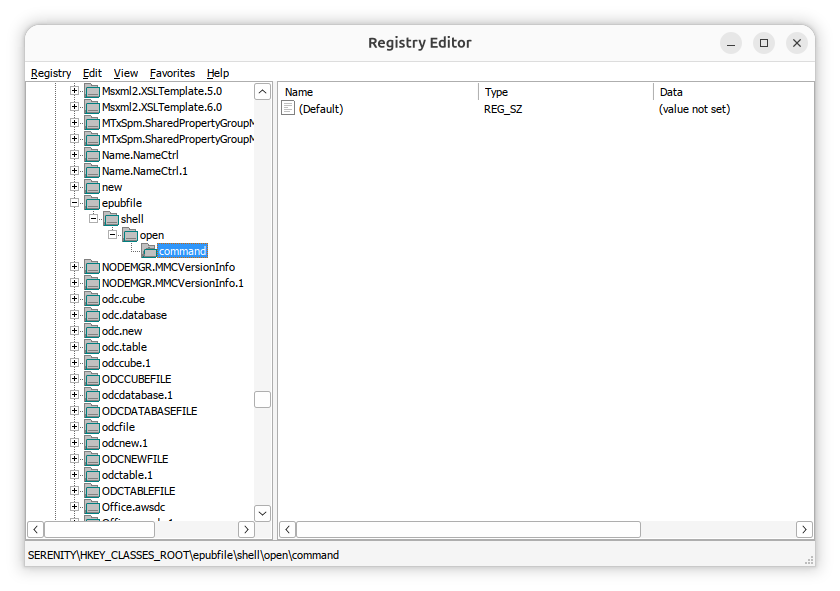 HKEY_CLASSES_ROOT\epubfile\shell\open\command,
