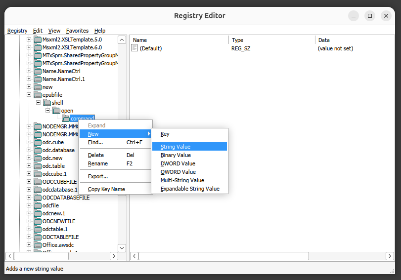 epubfile. Then double-click on the (Default) entry