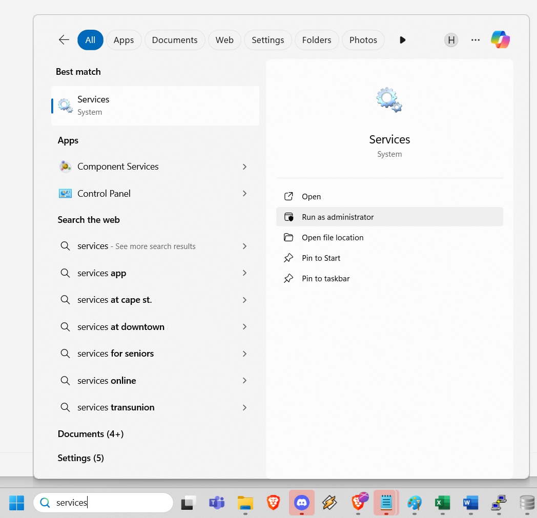 When the status for the service returns to "Running", you can close the Services window.
